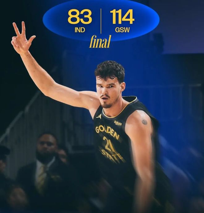 第四节决战,巴特勒背打内姆布哈德转身挑篮命中,接着再抢断快攻暴扣得手,勇士领先到14分打停步行者,比赛再无悬念,最终,勇士114-83大胜步行者31分,送给对手4连败。